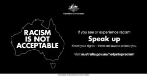 Racism, in any form, is not acceptable in Australia. That’s why there are laws to protect you. If you see or experience racism, speak up. Visit www.australia.gov.au/helpstopracism.